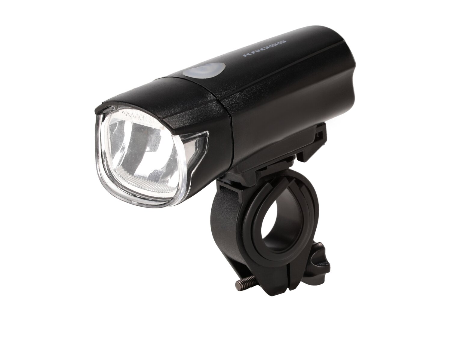 LAMPKA ROWEOWEROWA PRZEDNIA NATTY Przednia lampka Kross Natty będzie doskonałym wyborem dla osób poszukujących prostego akcesorium, zapewniającego optymalny strumień światła o średnim natężeniu (25 luksów na 10 m), odpowiednim zarówno do jazdy po mieście, jak i słabiej oświetlonych terenach. Lampka wykonana z tworzywa sztucznego, może być używana w trudnych warunkach atmosferycznych, ponieważ uszczelniona obudowa doskonale chroni przed przenikaniem wody do jej wnętrza. Markowa dioda LED firmy OSRAM o mocy 1 W gwarantuje doskonałą jakość światła. O stanie zużycia baterii informuje wbudowany czujnik. Niewielka waga (75 g) oraz optymalne wymiary (94×42×37 mm), sprawiają, że lampka będzie odpowiednia dla każdego typu rowerów. Intuicyjny sposób montażu pozwala łatwo zamocować lampkę na kierownicy jednośladu. Zasilanie za pomocą wymiennych baterii.Oświetlenie roweroweLampki rowerowe to podstawowe wyposażenie zwiększające bezpieczeństwo podczas jazdy. Ich rola jest nie do przecenienia, jeśli nie chcemy rezygnować z ulubionej aktywności zimą, kiedy słońce zachodzi znacznie wcześniej lub planujemy długą trasę, której ukończenie przed zmrokiem może okazać się niemożliwe. Odpowiednie oświetlenie nie tylko zwiększa zasięg naszego wzroku w ciemności, ale przede wszystkim pozwala innym uczestnikom ruchu odpowiednio wcześnie dostrzec poruszającego się po drodze kolarza. Warto pamiętać, że do używania lamp po zmroku zobowiązuje rowerzystów kodeks drogowy.