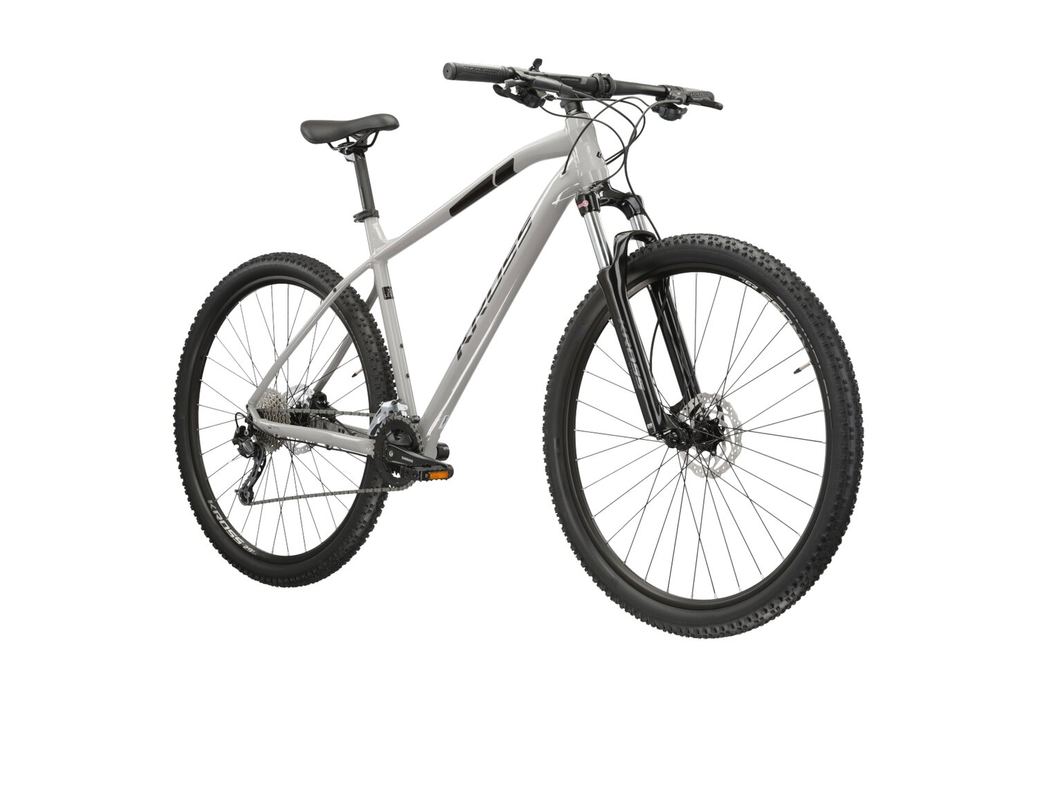 Wewnętrzne prowadzenie kabli wydłuża żywotność linek i pancerzy chroniąc je przed błotem, piachem czy deszczem. W celu maksymalnej ochrony naszych ram stworzyliśmy system wymiennych haków, które w razie uszkodzenia można łatwo i szybko wymienić. Aby ograniczyć możliwość uszkodzenia ramy do minimum gwinty umieszczamy na haku lub na specjalnej nakrętce. Hamulce tarczowe gwarantują nam dużą siłę hamowania i dobrą modulację nawet w najcięższych warunkach pogodowych, a ich żywotność jest znacznie dłuższa niż hamulców tradycyjnych. Precyzja hamowania wzrasta dzięki wyeliminowaniu zbędnych przejściówek co wpływa na sztywność połączenia między ramą a zaciskiem. Lepsze odprowadzanie ciepła wydłuża żywotność hamulca i poprawia efektywność jego działania. Sposób malowania polegający na nakładaniu naelektryzowanych cząstek farby proszkowej na aluminium, które wymagają obróbki termicznej. Po spieczeniu powierzchnia lakieru tworzy idealnie gładką powłokę wyjątkowo odporną na uszkodzenia mechaniczne.Rowery górskie Kross to doskonałe narzędzia do podbijania trudnych szlaków terenowych, łączące wytrzymałe konstrukcje z zaawansowanymi technologiami amortyzacyjnymi. Z solidnymi ramami, precyzyjnymi hamulcami tarczowymi i innowacyjnymi systemami przerzutek modele MTB Kross są stworzone, by sprostać wyzwaniom bezdroży i dostarczyć pasjonatom jazdy terenowej niezapomnianych przygód. KROSS LEVEL 3.0 Vive la vie – niech żyje życie chciałoby się zakrzyczeć jadąc na KROSS Level 3.0. To rower górski, na którym na nowo odkryjesz radość płynącą z podróży w nieznane. Niezależnie od tego, czy będzie to droga przez ciemny las, czy też miejska ścieżka rowerowa. To rower stworzony do wielogodzinnych wypraw, i jesteśmy pewni, że docenisz każdą chwilę spędzoną za kierownicą tego roweru. Osprzęt do każdego terenu KROSS Level 3.0 to doskonały wybór dla każdego szukającego roweru uniwersalnego. Sprawdzony napęd Shimano z 18 przełożeniami zapewnia bezproblemową i tanią eksploatację. Tylna przerzutka z grupy Deore to trwała i sprawdzona konstrukcja, która zapewnia płynną i responsywną zmianę przełożeń również w trudniejszym terenie. By zapewnić pewność hamowania w każdych warunkach zamontowane zostały hydrauliczne hamulce tarczowe SRAM. Zapewniają one dużą większą siłę hamowania niż klasyczne hamulce v-brake. To także dużo większa i precyzyjniejsza modulacja siły hamowania niż w przypadku mechanicznych hamulców tarczowych. Technologie wspierające Cię w Twoich podróżach rowerowych Rama KROSS Level 3.0 została wykonana z aluminium 6061. Ten specjalny stop aluminium sprawia, że rower jest sztywny i odporny na złamania. Jednocześnie, jest to stosunkowo lekki materiał, który może zaskoczyć niejednego rowerzystę swoimi właściwościami. Rama jest malowana proszkowo, co przekłada się na trwałość malowania oraz odporność lakieru na uszkodzenia mechaniczne. Przy projektowaniu ramy postanowiliśmy wyposażyć ją w wewnętrzne prowadzenie linek. Dzięki temu sprawiliśmy, że rower wygląda estetycznie i schludnie, przez co może stanowić doskonały środek dojazdowy do pracy dla wielu osób. Ten system prowadzenia linek pozwolił nam także na zmniejszenie ryzyka zerwania linki w trakcie jazdy w terenie. Amortyzowany widelec SR Suntour ze skokiem 100 mm zapewnia wysoką kulturę pracy oraz doskonałe tłumienie wibracji powstających podczas jazdy po nierównej i wyboistej nawierzchni. Dodatkowo, na kierownicy znajduje się manetka blokady amortyzatora, która umożliwia zwiększenie efektywności pedałowania na płaskich odcinkach drogi.