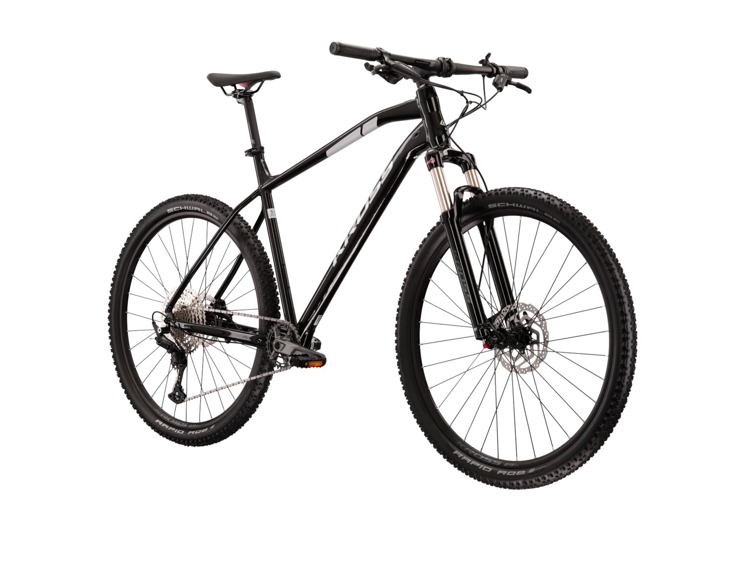 W celu maksymalnej ochrony naszych ram stworzyliśmy system wymiennych haków, które w razie uszkodzenia można łatwo i szybko wymienić. Aby ograniczyć możliwość uszkodzenia ramy do minimum gwinty umieszczamy na haku lub na specjalnej nakrętce. Wewnętrzne prowadzenie kabli wydłuża żywotność linek i pancerzy chroniąc je przed błotem, piachem czy deszczem. Hamulce tarczowe gwarantują nam dużą siłę hamowania i dobrą modulację nawet w najcięższych warunkach pogodowych, a ich żywotność jest znacznie dłuższa niż hamulców tradycyjnych. Precyzja hamowania wzrasta dzięki wyeliminowaniu zbędnych przejściówek co wpływa na sztywność połączenia między ramą a zaciskiem. Lepsze odprowadzanie ciepła wydłuża żywotność hamulca i poprawia efektywność jego działania. Sposób malowania polegający na nakładaniu naelektryzowanych cząstek farby proszkowej na aluminium, które wymagają obróbki termicznej. Po spieczeniu powierzchnia lakieru tworzy idealnie gładką powłokę wyjątkowo odporną na uszkodzenia mechaniczne.Rowery górskie Kross to doskonałe narzędzia do podbijania trudnych szlaków terenowych, łączące wytrzymałe konstrukcje z zaawansowanymi technologiami amortyzacyjnymi. Z solidnymi ramami, precyzyjnymi hamulcami tarczowymi i innowacyjnymi systemami przerzutek modele MTB Kross są stworzone, by sprostać wyzwaniom bezdroży i dostarczyć pasjonatom jazdy terenowej niezapomnianych przygód. KROSS LEVEL 5.0 KROSS Level 5.0 to rower górski, który może wprowadzić w kolarstwo górskie, a jednocześnie bez problemu posłuży jako rower do jazdy po mieście. Wyposażyliśmy go w sprawdzony osprzęt, przez co bez problemu będziesz mógł na nim spróbować swoich sił w pierwszych maratonach MTB, a także odnajdziesz się w mieście. Nowa rama – NEW GEN Świeża geometria to nie tylko płaski kąt główki czy niższy top tube. Nowa rama w KROSS Level 5.0 oferuje główkę ramy dostowaną do taperowanych rur sterowych i wewnętrznego prowadzenia przewodów. To także kompatybilność ze sztycami typu dropper, sztywne osie kół oraz miejsce na oponę o szerokości do 2,5 cala. Rozwiązania te gwarantują dopasowanie do najnowszych standardów i pełnię radości z jazdy XC – nie tylko podczas maratonów, ale także dowolnych single-tracków. Osprzęt do każdego terenuKROSS Level 5.0 to doskonały wybór dla każdego szukającego roweru uniwersalnego. Sprawdzony napęd Shimano z 11 przełożeniami zapewnia bezproblemową i tanią eksploatację. Tylna przerzutka z grupy Cues to trwała i sprawdzona konstrukcja, która zapewnia płynną i responsywną zmianę przełożeń również w trudniejszym terenie. By zapewnić pewność hamowania w każdych warunkach zamontowane zostały hydrauliczne hamulce tarczowe Shimano. Zapewniają one dużą większą siłę hamowania niż klasyczne hamulce v-brake. To także dużo większa i precyzyjniejsza modulacja siły hamowania niż w przypadku mechanicznych hamulców tarczowych. Technologie wspierające Cię w Twoich podróżach rowerowych Rama KROSS Level 5.0 została wykonana z aluminium 6061. Ten specjalny stop aluminium sprawia, że rower jest sztywny i odporny na złamania. Jednocześnie, jest to stosunkowo lekki materiał, który może zaskoczyć niejednego rowerzystę swoimi właściwościami. Rama jest malowana proszkowo, co przekłada się na trwałość malowania oraz odporność lakieru na uszkodzenia mechaniczne.Przy projektowaniu ramy postanowiliśmy wyposażyć ją w wewnętrzne prowadzenie linek. Dzięki temu sprawiliśmy, że rower wygląda estetycznie i schludnie, przez co może stanowić doskonały środek dojazdowy do pracy dla wielu osób. Ten system prowadzenia linek pozwolił nam także na zmniejszenie ryzyka zerwania linki w trakcie jazdy w terenie.Amortyzowany widelec SR Suntour ze skokiem 120 mm zapewnia wysoką kulturę pracy oraz doskonałe tłumienie wibracji powstających podczas jazdy po nierównej i wyboistej nawierzchni. Dodatkowo, na kierownicy znajduje się manetka blokady amortyzatora, która umożliwia zwiększenie efektywności pedałowania na płaskich odcinkach drogi.