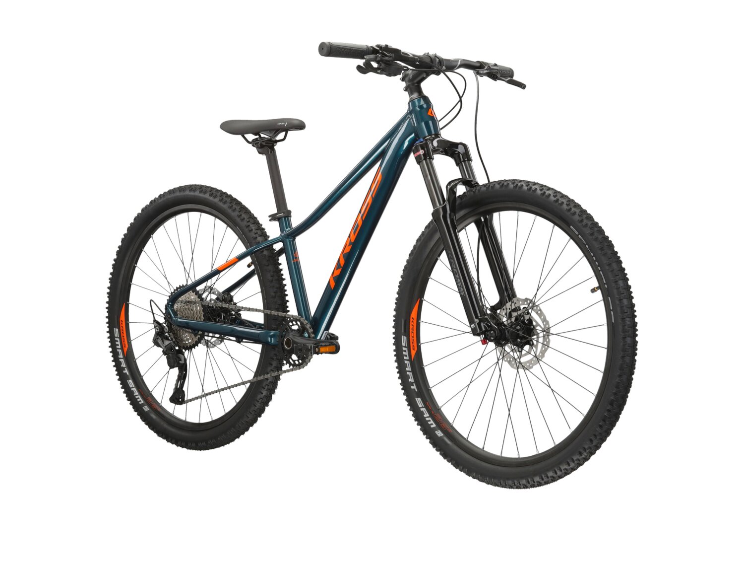 W celu maksymalnej ochrony naszych ram stworzyliśmy system wymiennych haków, które w razie uszkodzenia można łatwo i szybko wymienić. Aby ograniczyć możliwość uszkodzenia ramy do minimum gwinty umieszczamy na haku lub na specjalnej nakrętce. Hamulce tarczowe gwarantują nam dużą siłę hamowania i dobrą modulację nawet w najcięższych warunkach pogodowych, a ich żywotność jest znacznie dłuższa niż hamulców tradycyjnych. Precyzja hamowania wzrasta dzięki wyeliminowaniu zbędnych przejściówek co wpływa na sztywność połączenia między ramą a zaciskiem. Lepsze odprowadzanie ciepła wydłuża żywotność hamulca i poprawia efektywność jego działania.  Sposób malowania polegający na nakładaniu naelektryzowanych cząstek farby proszkowej na aluminium, które wymagają obróbki termicznej. Po spieczeniu powierzchnia lakieru tworzy idealnie gładką powłokę wyjątkowo odporną na uszkodzenia mechaniczne. Wewnętrzne prowadzenie kabli wydłuża żywotność linek i pancerzy chroniąc je przed błotem, piachem czy deszczem. KROSS LEVEL JR 5.0 Wzorując się na „dorosłych” modelach rowerów KROSS, stworzyliśmy KROSS Level JR 5.0. Jest to rower, który może wprowadzić w kolarstwo górskie, a jednocześnie bez problemu posłuży jako rower do jazdy po mieście. Wyposażyliśmy go w sprawdzony osprzęt, przez co bez problemu będziesz mógł na nim spróbować swoich sił w trudnym terenie. Osprzęt do każdego terenu Rower KROSS Level JR 5.0 został wyposażony w napęd w systemie 1×10. Umożliwi to sprawne pokonywanie podjazdów oraz szybką jazdę po płaskich odcinkach. Tylna przerzutka z grupy Deore od Shimano to trwała i sprawdzona konstrukcja, która zapewnia płynną zmianę przełożeń. By zapewnić pewność hamowania w każdych warunkach zamontowane zostały hydrauliczne hamulce tarczowe Shimano. Zapewniają one dużą większą siłę hamowania niż klasyczne hamulce v-brake. To także dużo większa i precyzyjniejsza modulacja siły hamowania niż w przypadku mechanicznych hamulców tarczowych. Technologie zapewniające komfort użytkowania Rama KROSS Level JR 5.0 została wykonana z aluminium 6061. Ten specjalny stop aluminium sprawia, że rower jest sztywny i odporny na złamania. Jednocześnie, jest to stosunkowo lekki materiał, który może zaskoczyć niejednego rowerzystę swoimi właściwościami. Rama jest malowana proszkowo, co przekłada się na trwałość malowania oraz odporność lakieru na uszkodzenia mechaniczne. Przy projektowaniu ramy postanowiliśmy wyposażyć ją w wewnętrzne prowadzenie linek. Dzięki temu sprawiliśmy, że rower wygląda estetycznie i schludnie. Ten system prowadzenia linek pozwolił nam także na zmniejszenie ryzyka zerwania linki w trakcie jazdy w terenie. Amortyzowany widelec SR Suntour ze skokiem 100 mm zapewnia wysoką kulturę pracy oraz doskonałe tłumienie wibracji powstających podczas jazdy po nierównej i wyboistej nawierzchni.