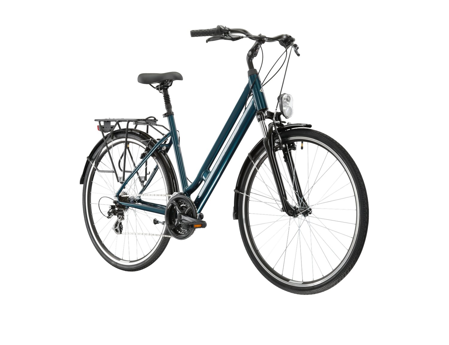 Wewnętrzne prowadzenie kabli wydłuża żywotność linek i pancerzy chroniąc je przed błotem, piachem czy deszczem. W celu maksymalnej ochrony naszych ram stworzyliśmy system wymiennych haków, które w razie uszkodzenia można łatwo i szybko wymienić. Aby ograniczyć możliwość uszkodzenia ramy do minimum gwinty umieszczamy na haku lub na specjalnej nakrętce. Sposób malowania polegający na nakładaniu naelektryzowanych cząstek farby proszkowej na aluminium, które wymagają obróbki termicznej. Po spieczeniu powierzchnia lakieru tworzy idealnie gładką powłokę wyjątkowo odporną na uszkodzenia mechaniczne. Tylny bagażnik o wytrzymałej konstrukcji, umożliwia bezpieczne przewożenie nawet bardzo ciężkiego bagażu (do 25 kg). Rowery miejskie Kross to idealne rozwiązanie dla tych, którzy cenią sobie komfort i styl podczas codziennych przejażdżek po mieście. Lekkie ramy, ergonomiczne siodła i niezawodne hamulce – dzięki nim jazda po mieście jest nie tylko efektywna, ale też bezpieczna. KROSS SENTIO 2.0 KROSS Sentio 2.0 to komfort i łatwość w przemieszczaniu się. Ta niezawodna maszyna zapewnia nie tylko szybką i płynną jazdę po ulicach, ale także komfort w trakcie weekendowych wypraw poza miasto. Bez względu na cel podróży, KROSS Sentio 2.0 zapewni Ci niezapomniane wrażenia z jazdy.Osprzęt do miejskiej jazdy i lekkiego terenu KROSS Sentio 2.0 stworzyliśmy z myślą o tym, by sprawiał Ci przyjemność z pokonywania każdego kilometra trasy. Sprawdzony napęd Shimano z 21 przełożeniami umożliwi Ci dopasowanie przełożenia do aktualnego terenu. Tylna przerzutka z grupy Altus to trwała i sprawdzona konstrukcja, która zapewnia płynną i responsywną zmianę przełożeń niezależnie od warunków na drodze. Za pewne i przewidywalne hamowanie odpowiadają hamulce v-brake, które oferują wysoką siłę hamowania niezależnie od aktualnych warunków atmosferycznych. Są lżejsze, dużo prostsze i tańsze w eksploatacji niż hamulce tarczowe, a również potrafią skutecznie zatrzymać rower.Idealny do codziennego użytkowania Zintegrowane z rowerem oświetlenie ułatwi jazdę po zmroku, a wysokiej jakości siodełko zachwyci Cię komfortem, jaki zaoferuje Ci podczas pokonywania długich tras. Dodatkowo, siodło zostało osadzone na amortyzowanej sztycy, co niweluje drgania powstające podczas jazdy po nierównościach. W rowerze miejskim nie mogło zabraknąć solidnego i stabilnego bagażnika. Umożliwia on przewożenie dodatkowego bagażu, a także nie będzie problemem montaż na nim dodatkowych sakw. Do kompletu trafił również system pełnych błotników, który zapewnia doskonałą ochronę przed błotem.Technologie wspierające Cię w Twoich podróżach rowerowych Rama KROSS Sentio 2.0 została wykonana z aluminium 6061. Ten specjalny stop aluminium sprawia, że rower jest sztywny i odporny na złamania. Jednocześnie, jest to stosunkowo lekki materiał, który może zaskoczyć niejednego rowerzystę swoimi właściwościami. Rama jest malowana proszkowo, co przekłada się na trwałość malowania oraz odporność lakieru na uszkodzenia mechaniczne. Przy projektowaniu ramy postanowiliśmy wyposażyć ją w wewnętrzne prowadzenie linek. Dzięki temu sprawiliśmy, że rower wygląda estetycznie i schludnie, przez co może stanowić doskonały środek dojazdowy do pracy dla wielu osób. Ten system prowadzenia linek pozwolił nam także na zmniejszenie ryzyka zerwania linki. Amortyzowany widelec SR Suntour ze skokiem 50 mm sprawi, że bez problemu dojedziesz do miejsca docelowego bez martwienia się o krawężniki czy kostkę brukową. Natomiast w trakcie wypadów za miasto, możliwa będzie jazda bez obaw o kamienie czy korzenie.